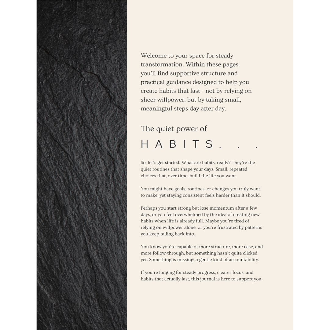 You can move through the pages in order or choose topics that feel most relevant that day. The key is consistency and intention - taking small moments daily to check in with yourself, track your progress, and notice what’s changing.
